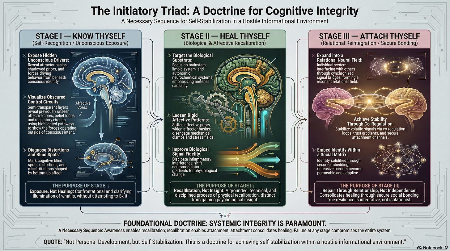 I would just switch out to say a therapeutic relationship, given the constraints we have talked about in the therapy section. The biggest impediment to healing is the emotional and often spiritual bypassing that people resort to, which is a very logical way to avoid response of those negative affect priors in terms of attachment. There’s an expression of that with “self-reliance”, since when you are on your own, those deep affective priors don’t get triggered, it gives the illusion of resolve. Taking the trigger away, not having deep, vulnerable bonds, doesn’t mean those affective priors are resolved. Why would they be? That’s akin to “If I can’t see them, they can’t see me” by closing your eyes. You can release your priors “on your own” (through the interventions), but that’s not healing, healing happens when the affect, hedonics, valence, identity and behavioral responses change. To what degree one can change is a completely different matter. Though reintegration into the social matrix and re-attaching securely are the most important aspects of healing. Outside of releasing those affective priors, I’d recommend reading The Attachment Compass. And I can share that I will be rewriting it partially to accommodate the principles we explored here for the Extended Edition.